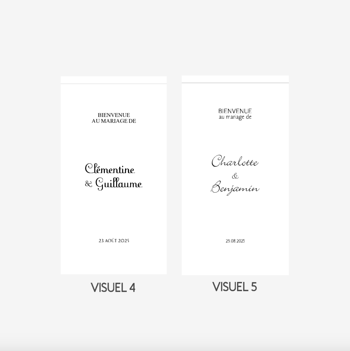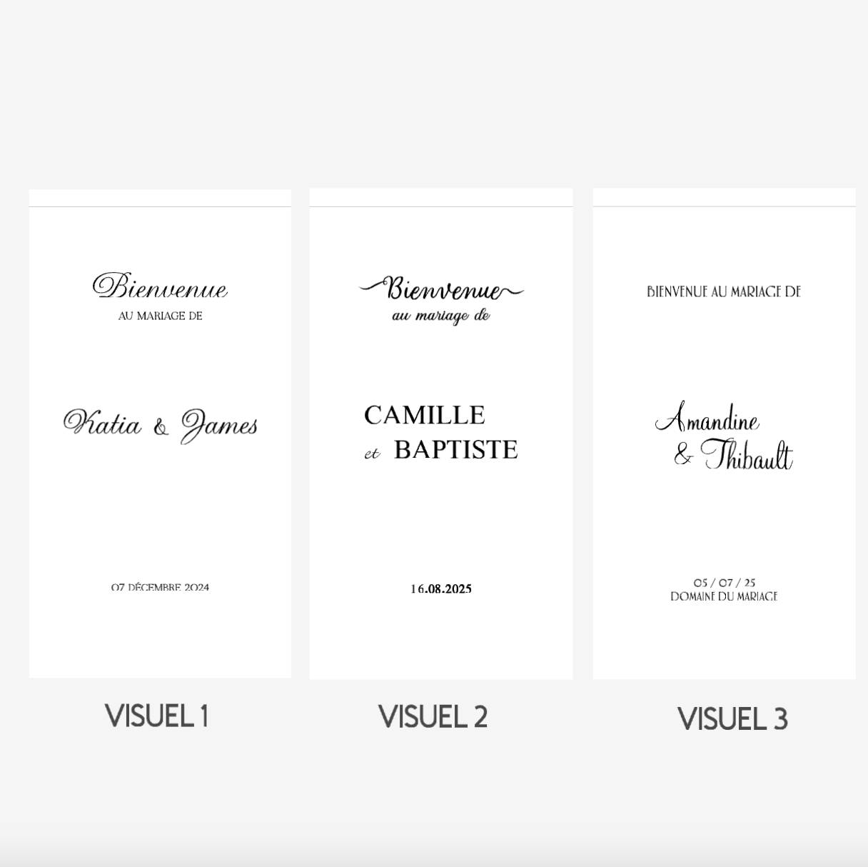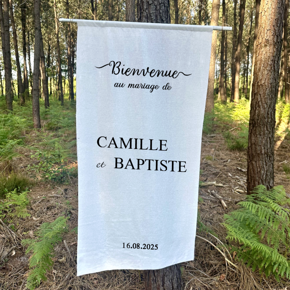 Décorez votre entrée de mariage avec un joli panneau en tissu, sobre et élégant !
